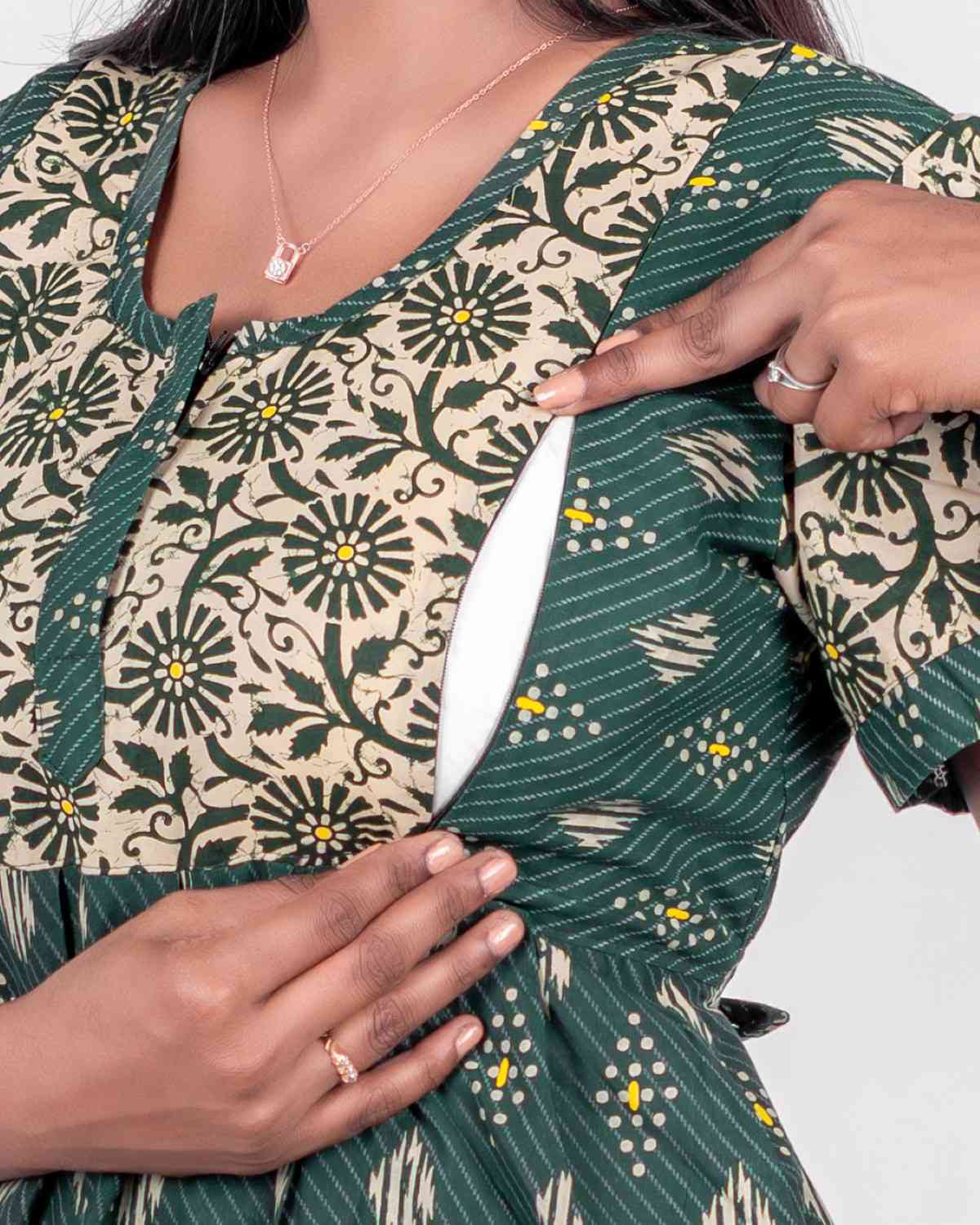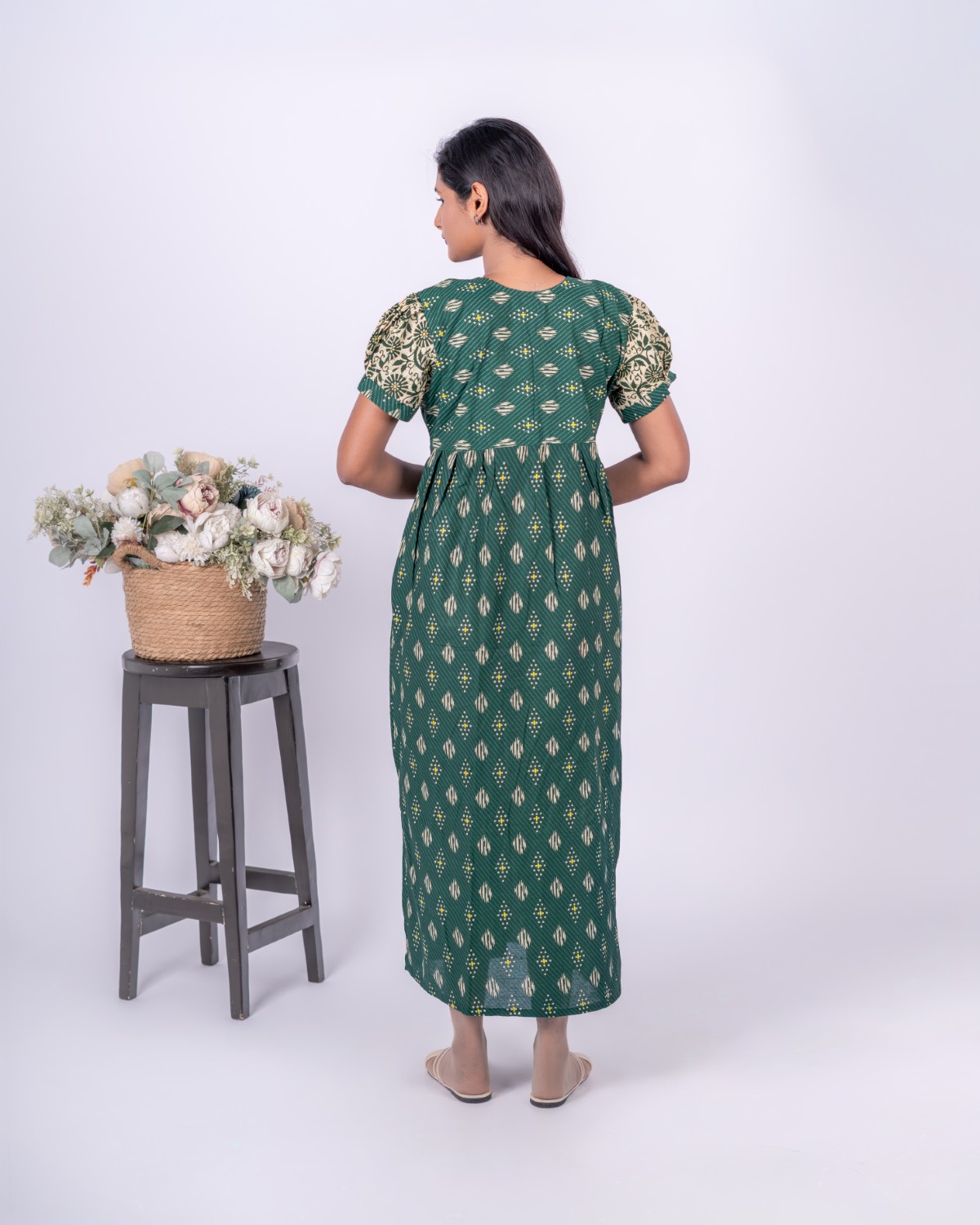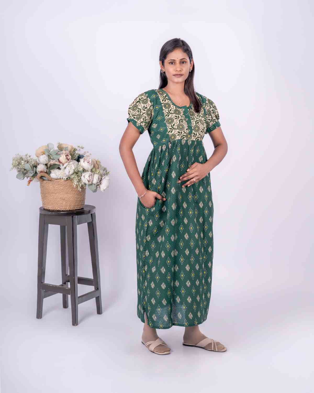 Dishani - Pure Cotton Short Sleev Nighty Model - Frock Feeding two side long zip Fabric : Cotton Sizes : L(42),XL(44),XXL(46),3XL(48) Length : 55" Take Order Get Same Day Dispatch