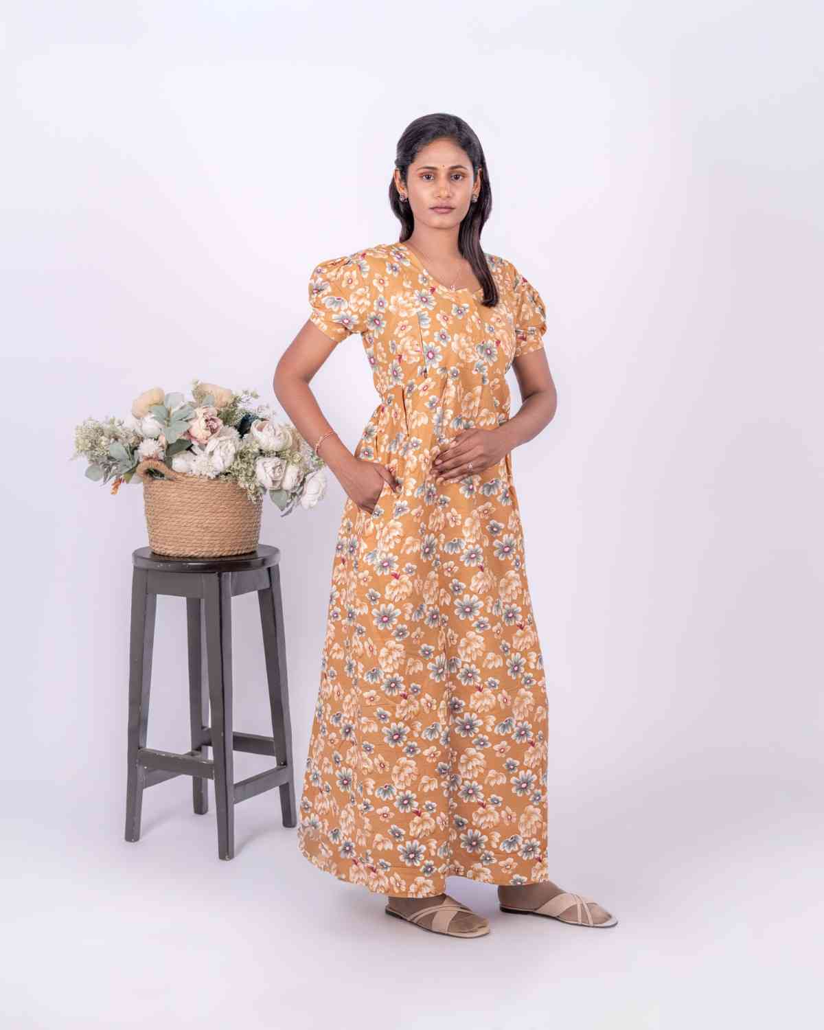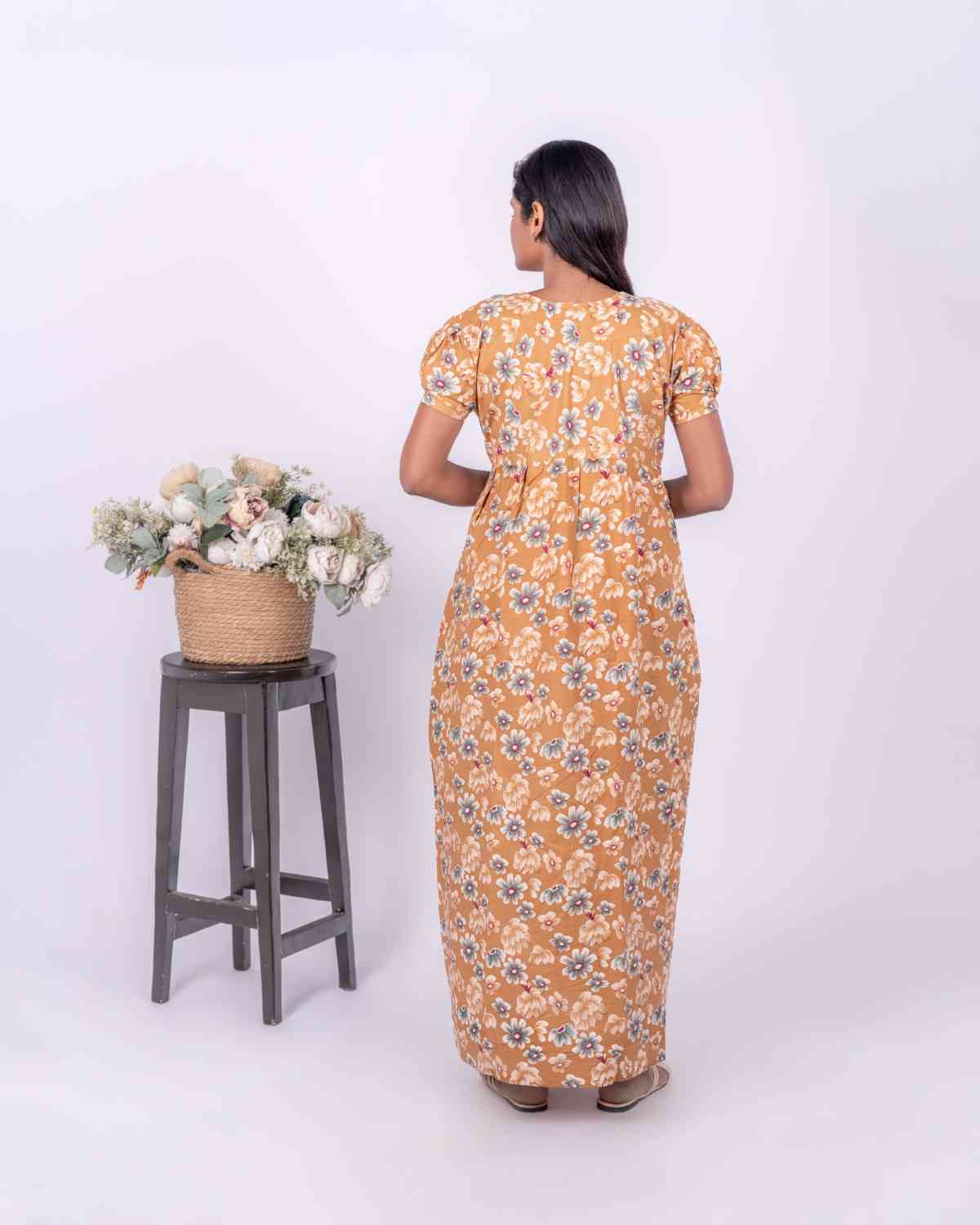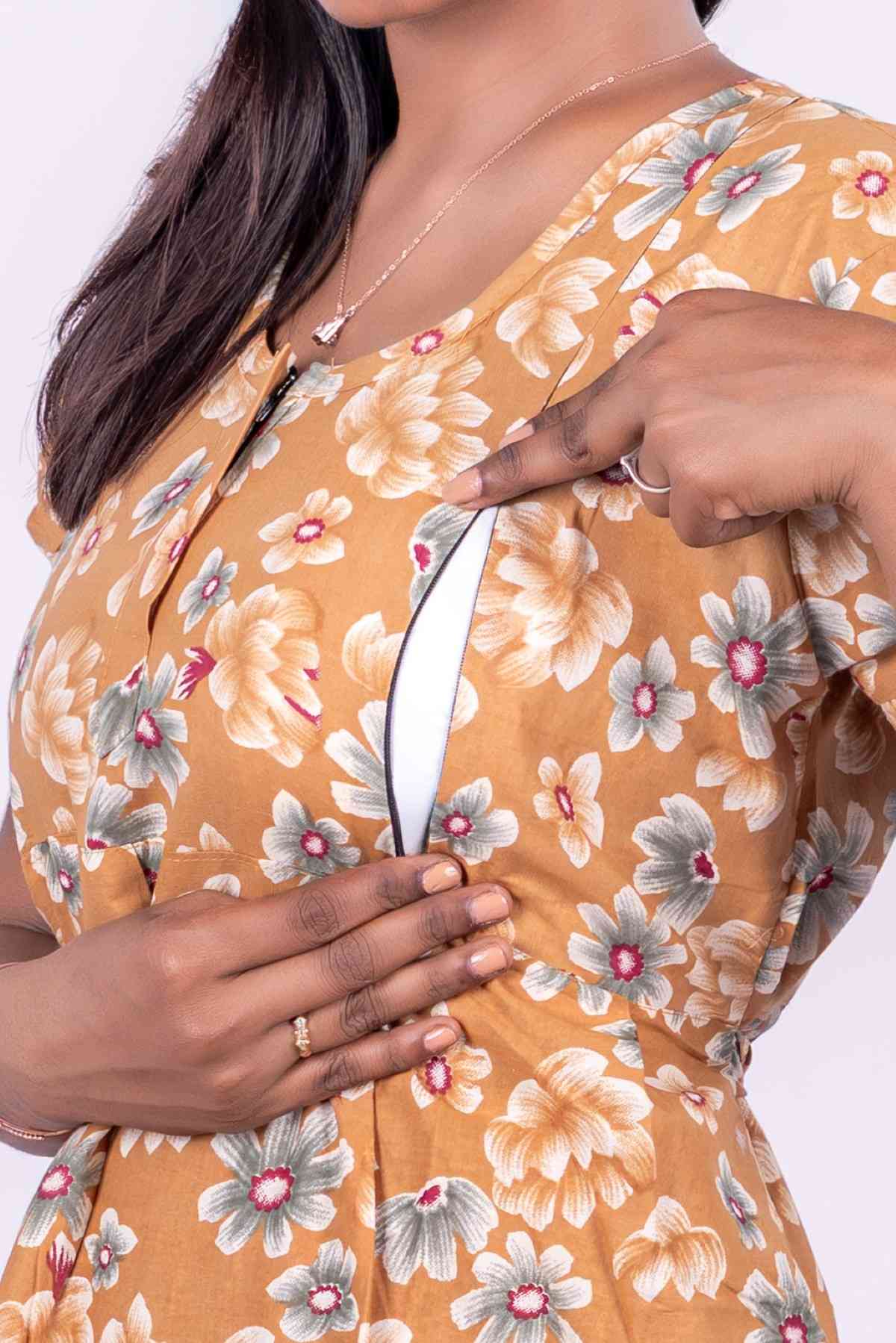 Dishani - Pure Cotton Short Sleev Nighty Model - Frock Feeding two side long zip Fabric : Cotton Sizes : L(42),XL(44),XXL(46),3XL(48) Length : 55" Take Order Get Same Day Dispatch
