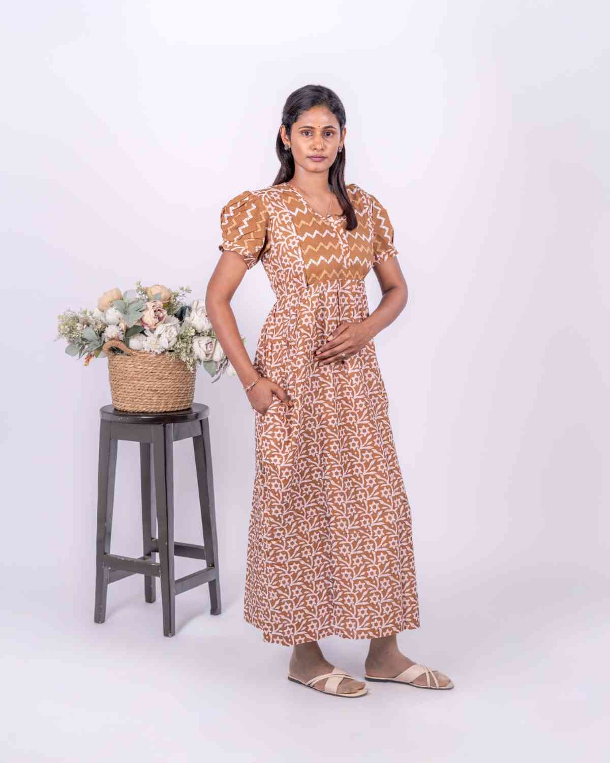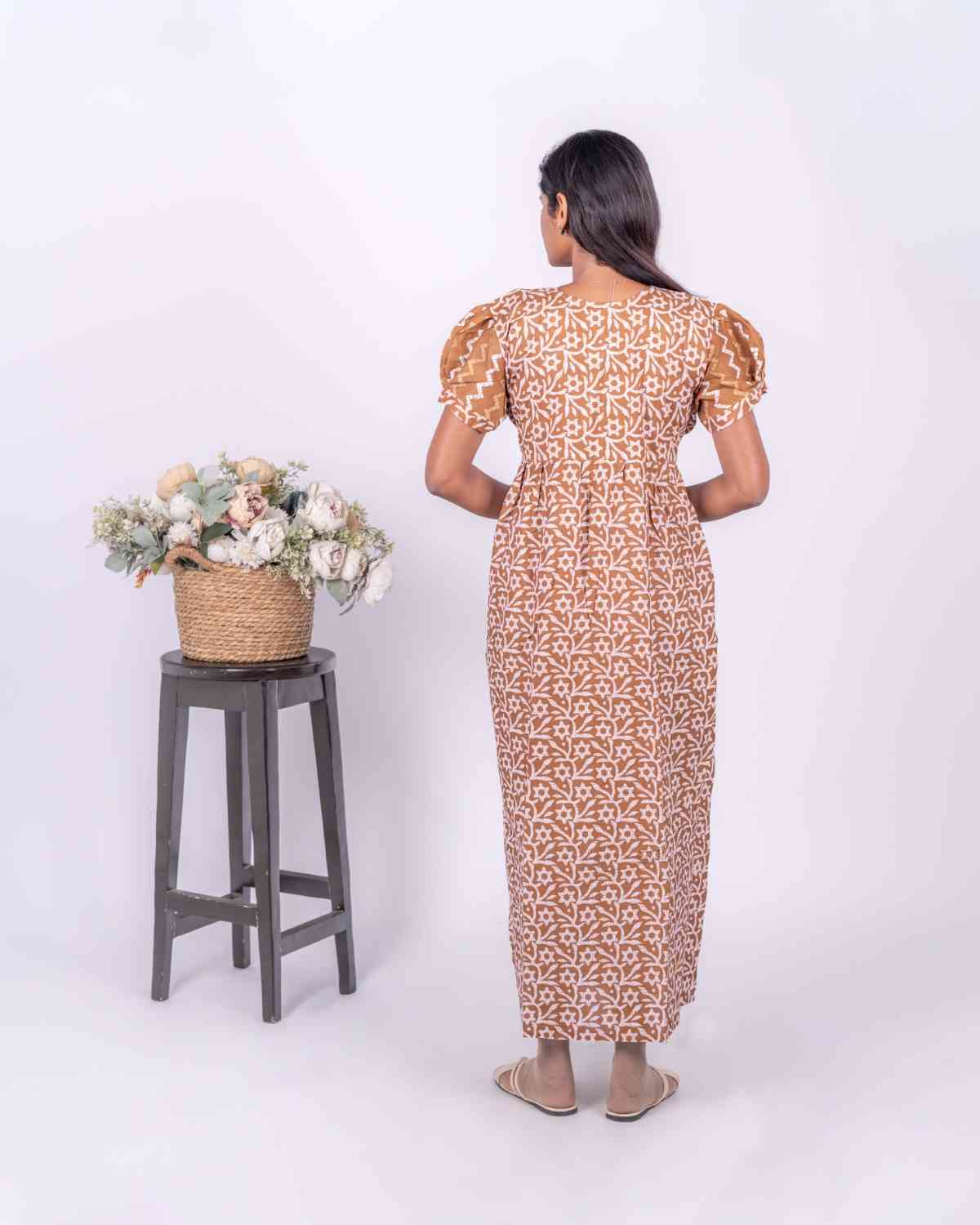 Dishani - Pure Cotton Short Sleev Nighty Model - Frock Feeding two side long zip Fabric : Cotton Sizes : L(42),XL(44),XXL(46),3XL(48) Length : 55" Take Order Get Same Day Dispatch