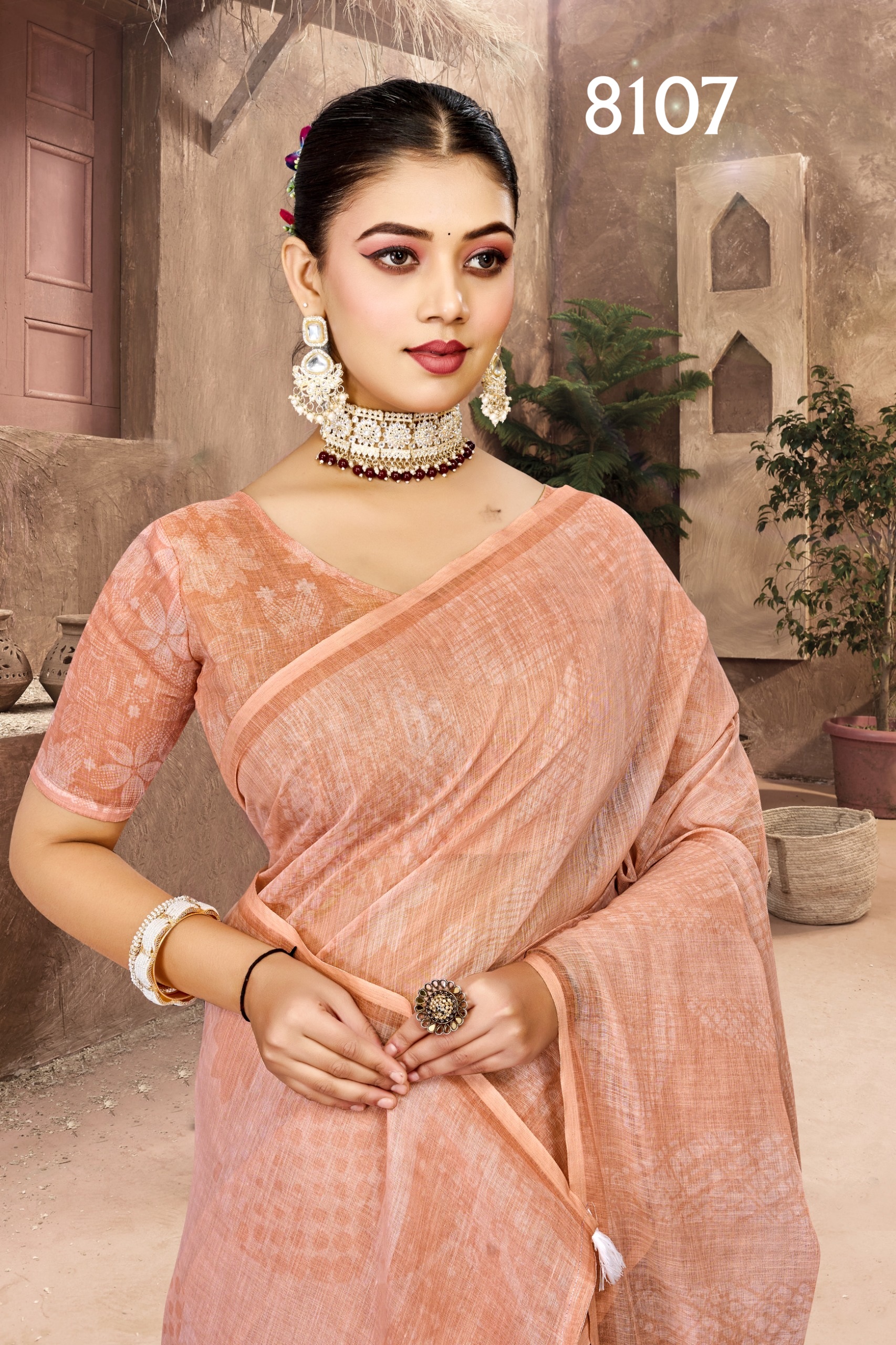 Pure Linen cotton sarees for daily wear 6.10 mtr Saree Length With Running Blouse