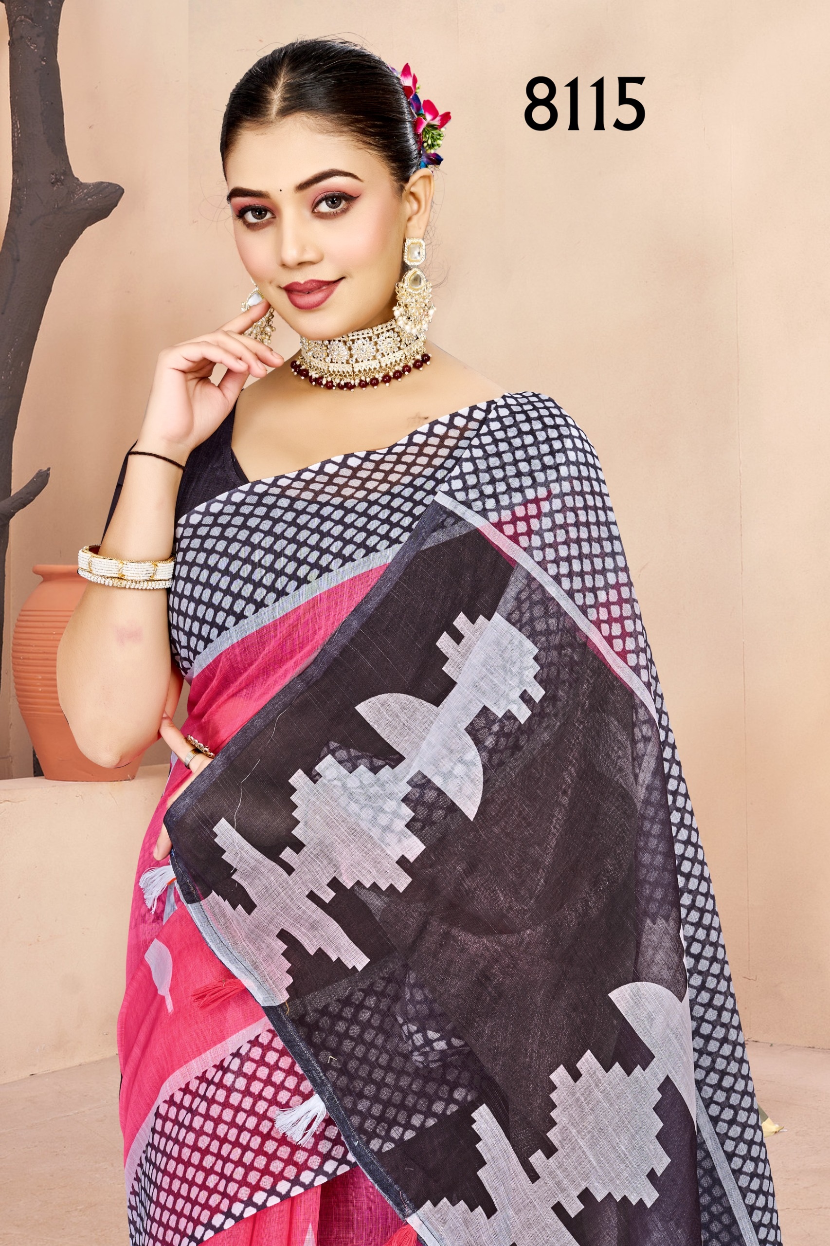 Pure Linen cotton sarees for daily wear 6.10 mtr Saree Length With Running Blouse